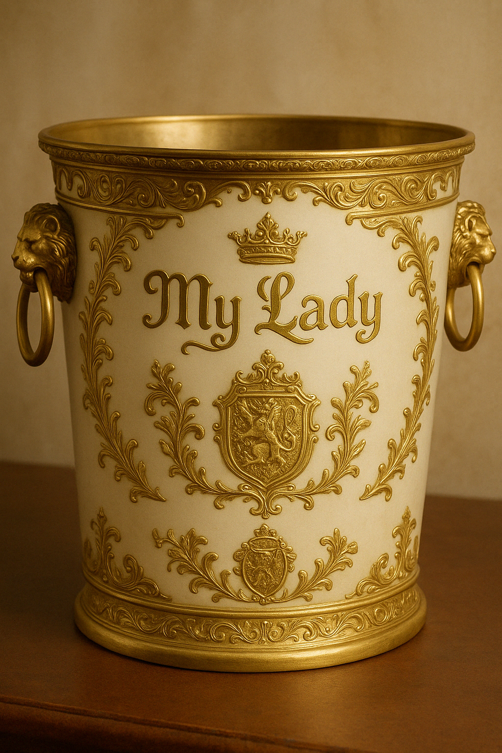 My Lady’s Elegant Champagne Bucket is a refined fusion of form and function. Designed to hold a single bottle in royal splendor, this golden ice bucket features ornate baroque handles and delicate engravings. A centerpiece for intimate celebrations, or the perfect finishing touch to a sophisticated bar.